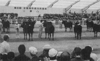 (社)全国和牛登録協会主催の第8回全国和牛能力共進会が、岐阜県清見村と高山市で平成14年9月26日〜29日に開催されました。 「若い力と育種値で早めよう和牛改良、伸ばそう生産」の開催テーマのもと、38都道府県から種牛283頭、肉牛186頭が参加しました。 ![]() 本県からは、第3区若雌に1頭、第4区若雌に1頭、第6区繁殖雌牛群に1群4頭、第10区父系去勢肥育牛群に1群3頭が出品しました。 第3区(大宮町の小林伯さん出品)、第10区(十王町の加藤洋明さん、高萩市の米平牧場出品)が1等賞となりました。第4区、第6区は2等賞でした。 |