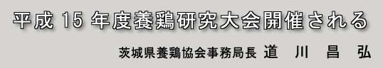 平成15年度養鶏研究大会が(社)日本養鶏協会関東甲信越地域協議会主催で去る6月25日(水)に大洗町「茨交大洗ホテル」において開催された。 この大会の開催に向けて、事務局の当番となった茨城県養鶏協会では、早くから準備を進めた甲斐もあり当日は、9県から生産者はじめ関係者など約230名が出席し、熱心に情勢報告、更に記念講演に耳をかたむけた。 境野徳夫副会長(埼玉県養鶏協会会長)の開会宣言の後、主催者を代表し村石愛二会長(千葉県農業協会養鶏部会会長)が養鶏業界は30年ぶりに大きな転換を迎えている。将来、私たちの子供や孫が、養鶏産業を継いでいけるかどうかの難しい時期に皆さんと共に、真剣に考えていきたいとあいさつした。 また、田中康弘茨城県養鶏協会会長が歓迎の言葉を述べた後、中村武雄茨城県農林水産部長、農林水産省関東農政局生産経済部畜産課の小林英典課長、(社)日本養鶏協会の梅原宏保会長代行がそれぞれあいさつした。 |