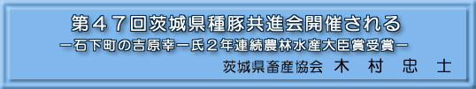 最後になりましたが、第47回の茨城県種豚共進会が無事終了できましたことにつきまして、出品者の方々をはじめ、関係者の方々に大変お世話になりましたことをこの場をお借りしましてお礼を申し上げます。 |