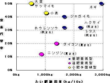 ダイコン・ニンジンなどの追肥重視型作物は,基肥窒素量により窒素代替率が抑えられ,たい肥施用量が著しく制限されます。