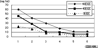 乾乳期間が短い区ほど低かった(60mg/ml,46mg/ml,23mg/ml) |