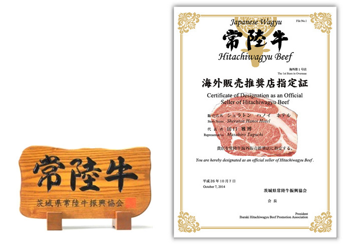 For the proof of the genuine Hitachiwagyu Beef provider, Ibaraki Hitachiwagyu Beef Promotion Association issues the certificate for designated restaurants or retaillers and wholesellers.