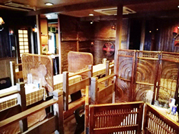 木の温もりあふれる間接照明のやわらかい光の店内。遊び心がある海賊風の店内も魅力的!王堂では心のこもったサービスをご提供!女子会やお誕生日会等の少人数でも楽しめる空間!