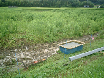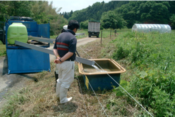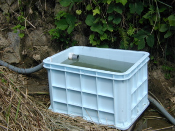 飲水施設(水路から落差を利用して引水) 【山口県畜産試験場】
