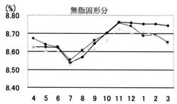 | 無脂固形分率(%) | 8.673 | 8.664 | 8.641 | 8.608 | 8.577 |