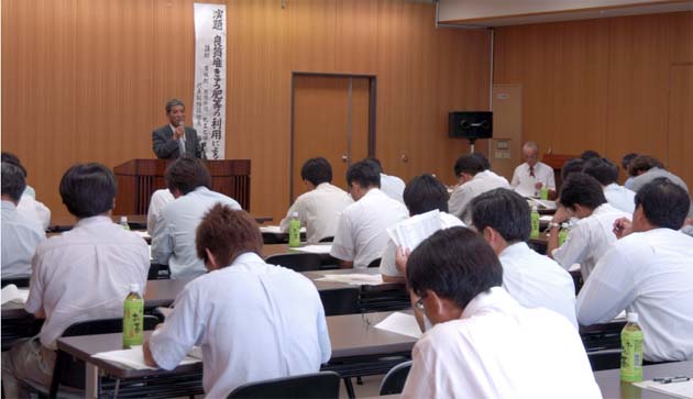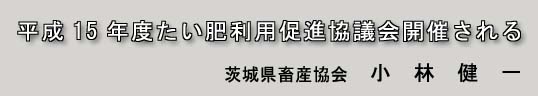 平成15年8月26日岩間町にある茨城県農業総合センター研修室において茨城県たい肥利用促進協議会(会長 茨城県畜産協会会長 廣木 f)が開催された。 当協議会は、たい肥センターにおける良質たい肥の生産及び流通・利用の促進を図り、地力の増進及び環境と調和した農業の健全な発展に寄与することを目的とし、平成13年3月14日に設立されたものである。 畜産協会の荒木昭雄専務や県畜産課の中里孝二課長補佐から平成16年11月1日から適用される「家畜排せつ物の管理の適正化及び利用の促進に関する法律」に向かって、素掘・野積み解消や堆肥化施設整備の巡回指導を行っていること、土作り・たい肥斡旋体制の確立のためのワーキングチームを畜産・耕種で立ち上げ活動している事が報告された。 |