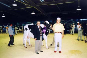 ここ数年、ショウは平日に行われておりましたが、本年は土曜日の開催となり、平成6年3月のショウ以来、約10年ぶりにジュニアショウも併せて開催し、かわいい出品者達に参観者から盛んな拍手が贈られました。 また、日本農業実践学園からの14頭の出品をはじめ、鯉渕学園、茨城県立農業大学校など、当県の酪農を担っていく若き精鋭達の、意欲ある出品も目立ってきております。栃木全共まで残すところ2年を切りました。上位入賞を果たしたく、当会といたしましても更に尽力していきたいと存じます。皆様方のあたたかいご支援ご協力のほど、今後ともよろしくお願い申し上げます。 ![]() |