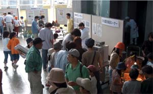 「畜産センター公開デー」では『来て・見て・楽しむ!』をテーマに施設を開放。「研究紹介コーナー」では顕微鏡を使った受精卵の観察など、「動物ふれあいコーナー」では子豚、子牛、山羊、ヒヨコとのふれあい、また、「1日体験獣医師さん」「ソーセージづくり」など体験コーナーも人気を集めた。特に「乳搾り体験」は今回はじめて屋外特設テントで実施、開放的な会場で家族全員が楽しめると好評、はじめて触れる牛のおっぱいの感触に皆で驚きの歓声をあげていた。 「ミルクメッセ」では、初の試み「ホルスタインショー」を開催、来場者は牛の美人コンテストを楽しんだ。さらに、「テーマ館(牛と乳と人の関係)」、「牛乳料理コンクール県大会」、子供達に人気の「キャラクターショー」などなど、畜産を中心とした多彩な催しが訪れた人を魅了した。 「ミートフェア」では、なかなか見られない牛の丸焼きがふるまわれ、美味しい焼き肉の臭いが会場内に溢れ、訪れた人の食欲をそそった。 |