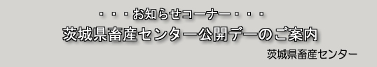 また、<ミルクメッセ2004いばらき>、<いばらきミートフェア2004>、 <畜産環境機械展示>が同時開催され、楽しいイベントが 盛りだくさんです。 天高く馬肥ゆる秋、ぜひ行楽をかねて家族そろってお出かけ下さい。 なお、本開催にあたりましては、畜産関係機関・団体の方々には、 並々ならぬお力添えをいただくことになりますので、 よろしくご協力の程お願い申し上げます。 ▼日 時 10/2(土) 10:00〜15:30 10/3(日) 9:30〜15:00 ▼場 所 茨城県畜産センター ![]() |
