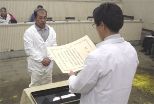 成績につきましては、最高位である名誉賞の1席に石下町の吉原幸一氏の出品豚で若齢個体のデュロックの雄が選ばれました。発育良好で、肉付きがよく、体高があり、各部の釣り合いもよく、背幅は広く、肋はよく開帳し、しりは広く長く、活気があり、下腿もよく発達したすばらしい雄でした。また2席にはつくば市の飯田吉治氏の出品豚で若齢個体のランドレースの雌、3席には神栖町の山中豊氏の出品豚で若齢個体のデュロックの雄が選ばれました。