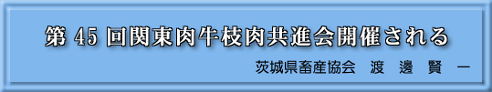 平成16年11月8日〜11日、(株)茨城県中央食肉公社において、第45回関東肉牛枝肉共進会(主催:関東肥育牛振興協会(県家畜商協 山口武平理事長))が開催されました。関東1都6県から、生後32ヵ月以内の黒毛和種35頭と生後28ヵ月以内の交雑種15頭が出品されました。