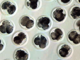 (写真:プライムテック社)2〜4細胞に発生したクローン胚