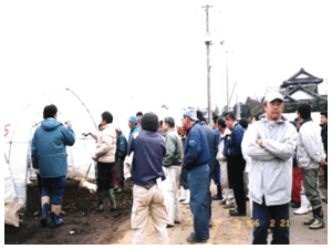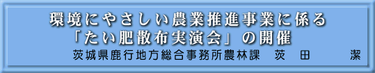 去る、平成18年2月21日に環境にやさしい農業鹿行地方推進会議(県鹿行地方総合事務所農林課)、鉾田市地域循環型農業システムづくり推進協議会(鉾田市)、鉾田地域土づくり運動推進連絡協議会(鉾田地域農業改良普及センター)によるたい肥散布実演会が、鉾田市舟木の畑とビニールハウスを利用して開催されました。