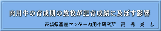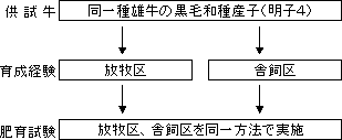 そこで育成期に適度な放牧を行った場合,その後の発育と枝肉成績に及ぼす影響について舎飼育成との比較・検討をしました。