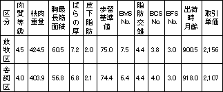 明光4の娘牛を用いて育成,肥育を実施したところ9頭中8頭が常陸牛相当の格付けとなりました。育成期に適正な飼料給与を行った場合,放牧区,舎飼区ともに育成期及び肥育期における発育と枝肉成績には差が認められませんでした。このことから育成期において適度な運動ができる放牧地やパドック等を活用することで,その後の肥育期における産肉性や肉質の向上効果が期待できると考えられました。