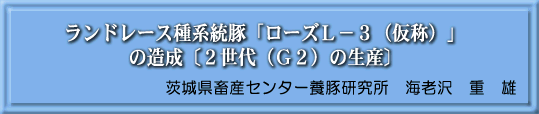 系統豚の維持豚群は認定後、外部からは他の種豚を導入することなく、群内で世代更新を繰り返すため徐々に群内の血縁関係が近親となり、これによる弊害が現れて維持することが困難になるため「ローズL−2」は平成22年頃には維持が限界になることが予想されます。このため、茨城県畜産センター養豚研究所では、平成15年度から、「ローズL−2」の後継系統豚「ローズL−3(仮称)」の造成を開始しており、平成22年度には完了する予定です。