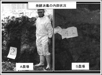 B発生農場に発酵処理可能な広さの堆肥処理施設があったことなどから発酵による消毒を行いました。