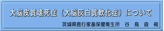 管内の肥育農場で22カ月齢の黒毛和種肥育牛が起立不能,弓なり緊張ならびに痙攣を示して急死し,大脳皮質壊死症と診断されました。本症は肥育牛等で主に飼養管理の失宜により時おり発生が認められます。したがって,日頃の適切な飼養管理に努めましょう。