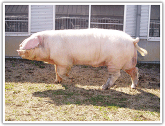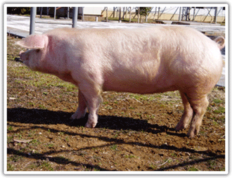 遺伝的に斉一性に富み、安定した能力を持つ系統豚として、平成6年に認定されたランドレース種系統豚「ローズL−2」は、本県の銘柄豚肉「ローズポーク」をはじめとする高品質豚肉生産に必要なF1母豚生産のため、広く利用されています。