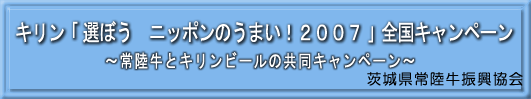 全国47都道府県から代表する地元産品とキリンビールの共同作業により「食の開発」を行い地産地消を推し進めるものであります。 2007年も茨城県代表は「常陸牛」で2年連続となりました。