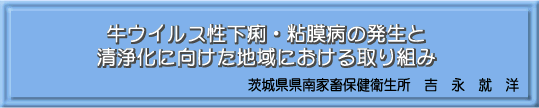 管内ある酪農地域において,牛ウイルス性下痢・粘膜病による流産が発生したことを受けて,地域酪農家,酪農組合獣医師,市役所と協力して地域ぐるみで清浄化の取り組みを行ったのでその概要を紹介します。