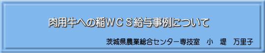 今後,稲WCSの利用拡大が期待される肉用牛への給与事例について,結城地域農業改良普及センター及び筑西地域農業改良普及センター管内の事例を紹介します。