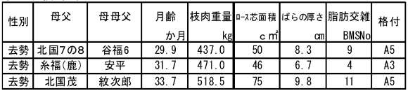 す。また、一部の枝肉成績が判明しましたので、子