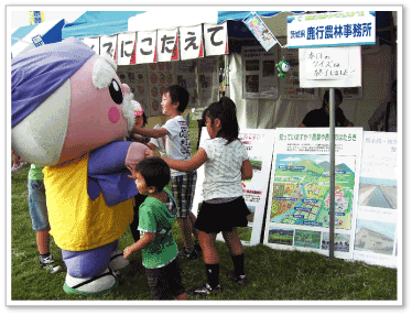 また,鹿行農林事務所のブースでは,事務所の 仕事と地域の農産 物のPRのため,鹿行 地域にちなんだクイ ズを行い,大変な盛 り上がりを見せまし た。
