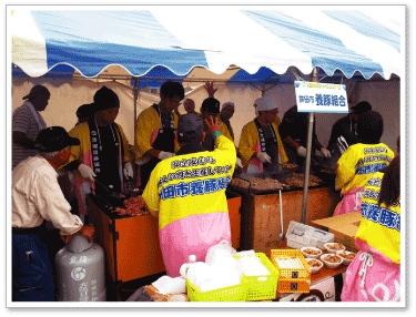 鉾田市養豚組合(菊地優組合長)では,安心・ 安全な豚肉をPRするため,豚の焼肉を販売してい ました。1,700人を超える方々がブースを訪れ,特に 最終日は数時間ほどで完売するほど盛況で,消費 者との交流,顔の見える消費宣伝活動が積極的に 行われていました。