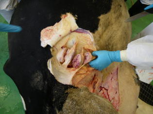 牛白血病は,体表リンパ節および体腔内リンパ節の腫大などの異常を示す疾病で,地方病性(成牛型)と散発型に分類されます。中でも地方病性牛白血病は,牛白血病ウイルス(以下BLV)の感染により引き起こされる腫瘍性の全身性疾患で,一般的に4歳から8歳で発症することが多いです。近年我が国での発生が増加しており,生産現場での被害も増大しています。BLVはリンパ球に感染し,血液や乳汁,注射器や直検手袋,除角器等の医療器具を介して伝播します。