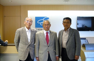 」で卵を販売。売上金70,980円を「県のイメージアップにつながる事業等に役立ててほしい」と鈴木会長,中村・田中副会長が茨城新聞文化福祉事業団に届けました。