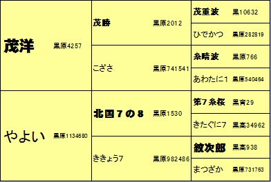 1 | 去勢 | 百合茂 | 北国7の8 | 28.3 |